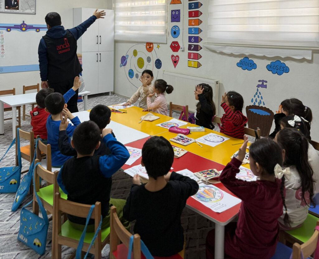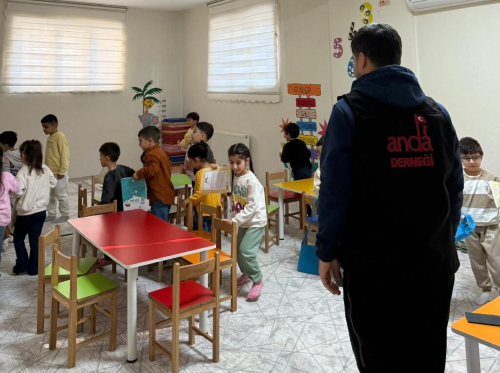 Afetlerdeki profesyonel duruşuyla tanınan Anda Arama Kurtarma Derneği, şehir genelinde yürüttüğü gönüllülük faaliyetleriyle de takdir topluyor. Dernek ekibi, geleceğin temeli olan çocuklara dokunmayı görev bilerek kursu ziyaret etti. Gönüllüler, oyuncaklarını alan miniklerle yakından ilgilendi ve onlara güven dolu bir ortam sundu.