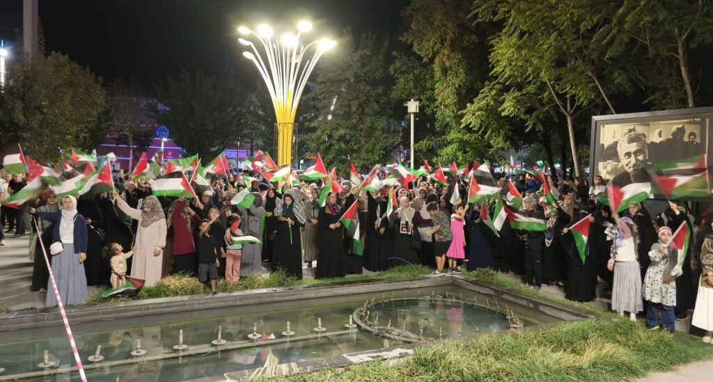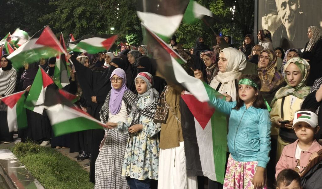 Gece boyunca devam eden programda vatandaşlar, sabah namazına kadar parkta kalarak Gazze’ye destek nöbeti tuttu.