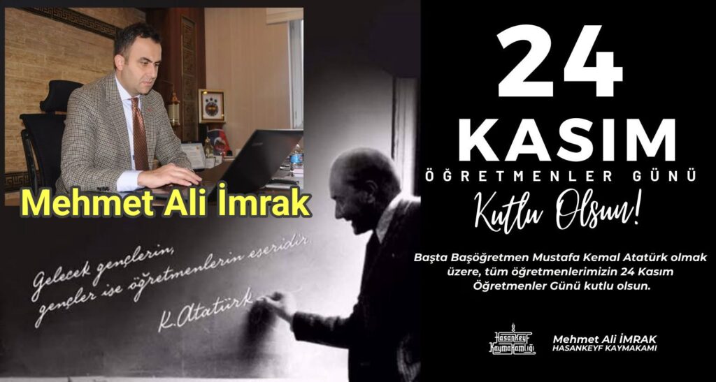 Hasankeyf Kaymakamı Mehmet Ali İmrak, 24 Kasım Öğretmenler Günü dolayısıyla yayımladığı mesajında, öğretmenlerin fedakârlık ve özveriyle geleceğe yön verdiğini vurguladı.